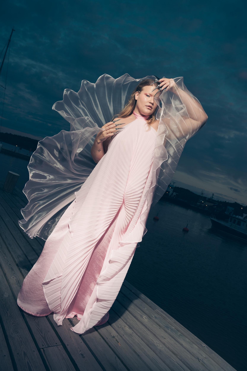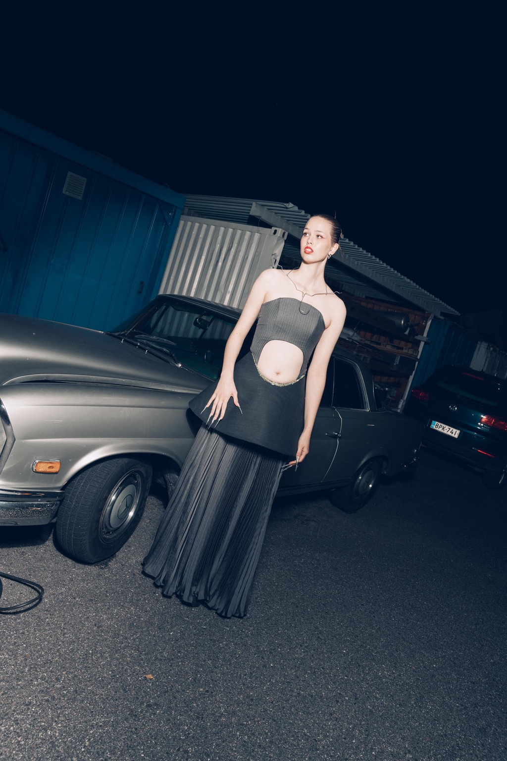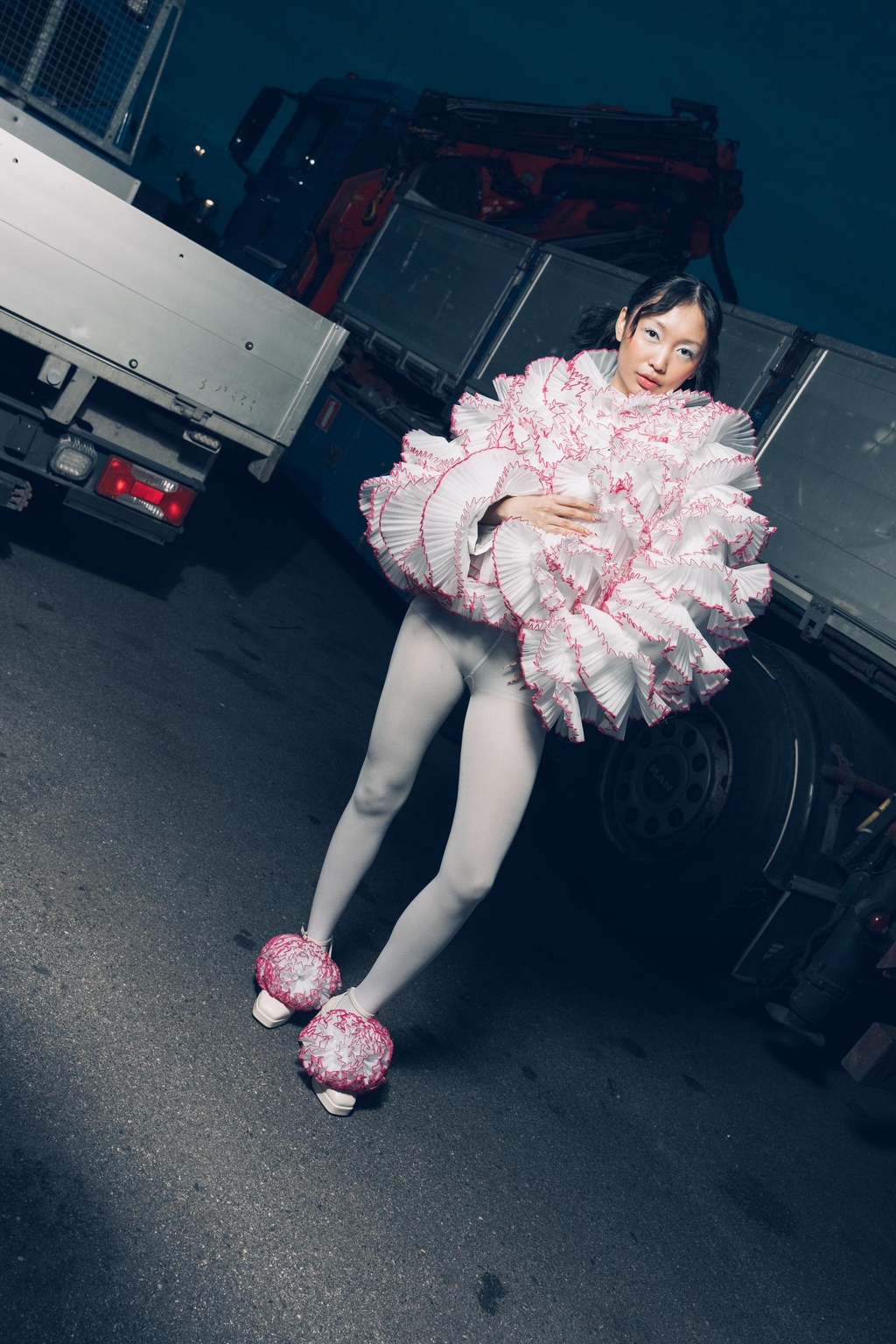 Some garments in this collection are made from industrial surplus fabrics – like Lemppari-sourced wool and elastic trims – while others use new materials where they best serve the design. Each choice is part of an exploration: how to create responsibly without losing the joy of creating.